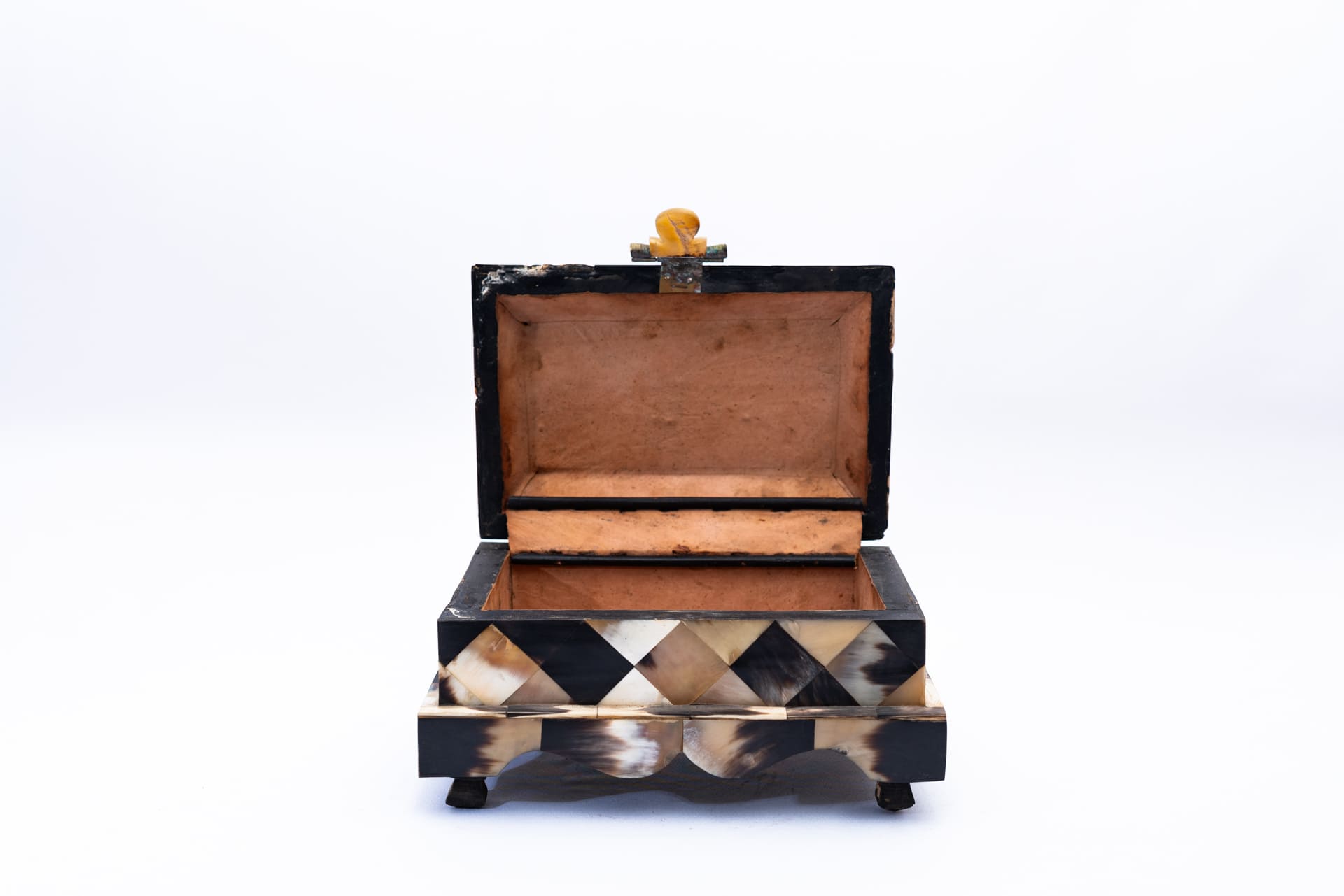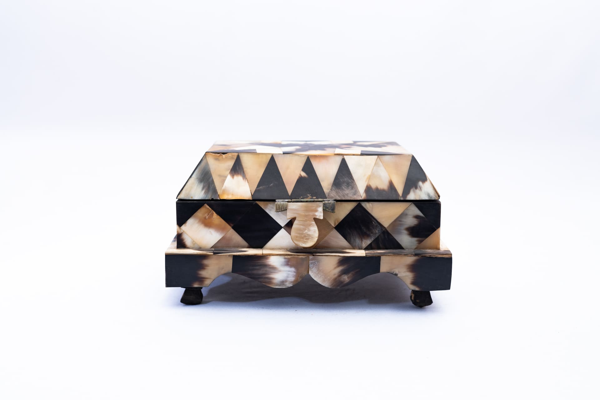 Artisan-Crafted Wooden Box with Intricate Bone Decorations
